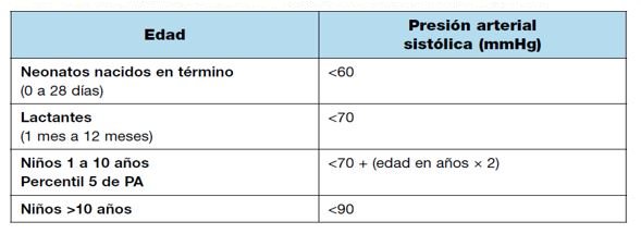 Definición de hipotensión según PAS y edad